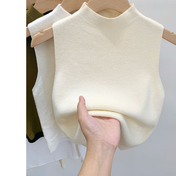 2025 סרגה סרוגים בקיץ החיצוני ללבוש בגדים לבנים חדש חליפה פנימית קטנה בסיס ללא שרוולים לנשים